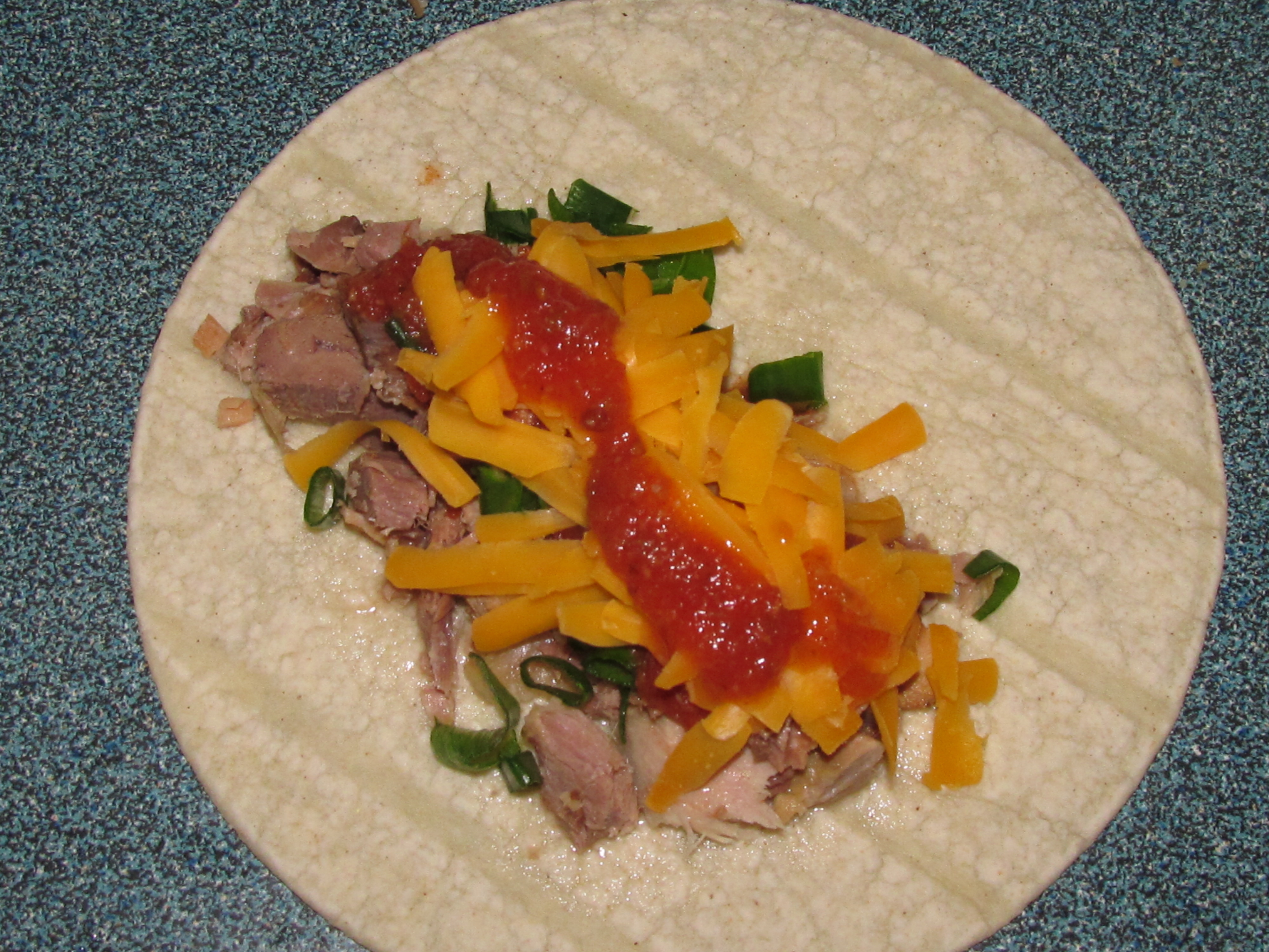 Please note: You need to work quickly with the GF tortillas, they tend to dry out fast.