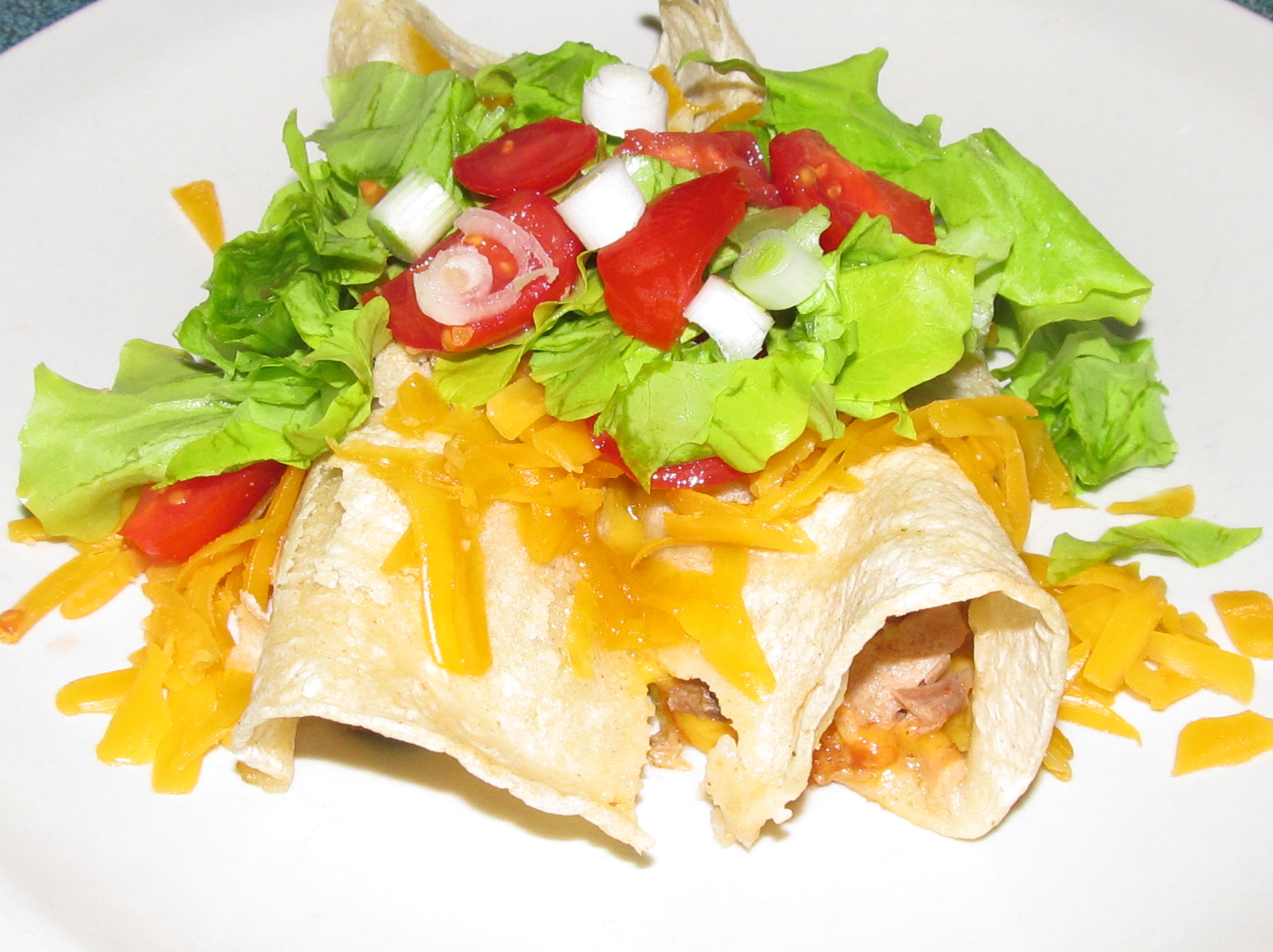 Lay soft tortilla shells on flat surface and fill with about 2 Tablespoons of pork per taquito. Layer onions, cheese, jalapeno, and salsa, about 1 -1/2 tablespoon each, on top of pork and roll tortilla shell. Lay each filled shell into a greased baking pan, with seam side down, so they don’t unroll. Continue to fill and roll tortillas until pan is full. Brush tops of rolled shells generously with GF oil and bake uncovered for 20 – 25 minutes, or until shells start to lightly brown and turn crisp. Remove from oven and top with cheese, lettuce, or any toppings you desire. We like to also add chopped tomatoes and more salsa.