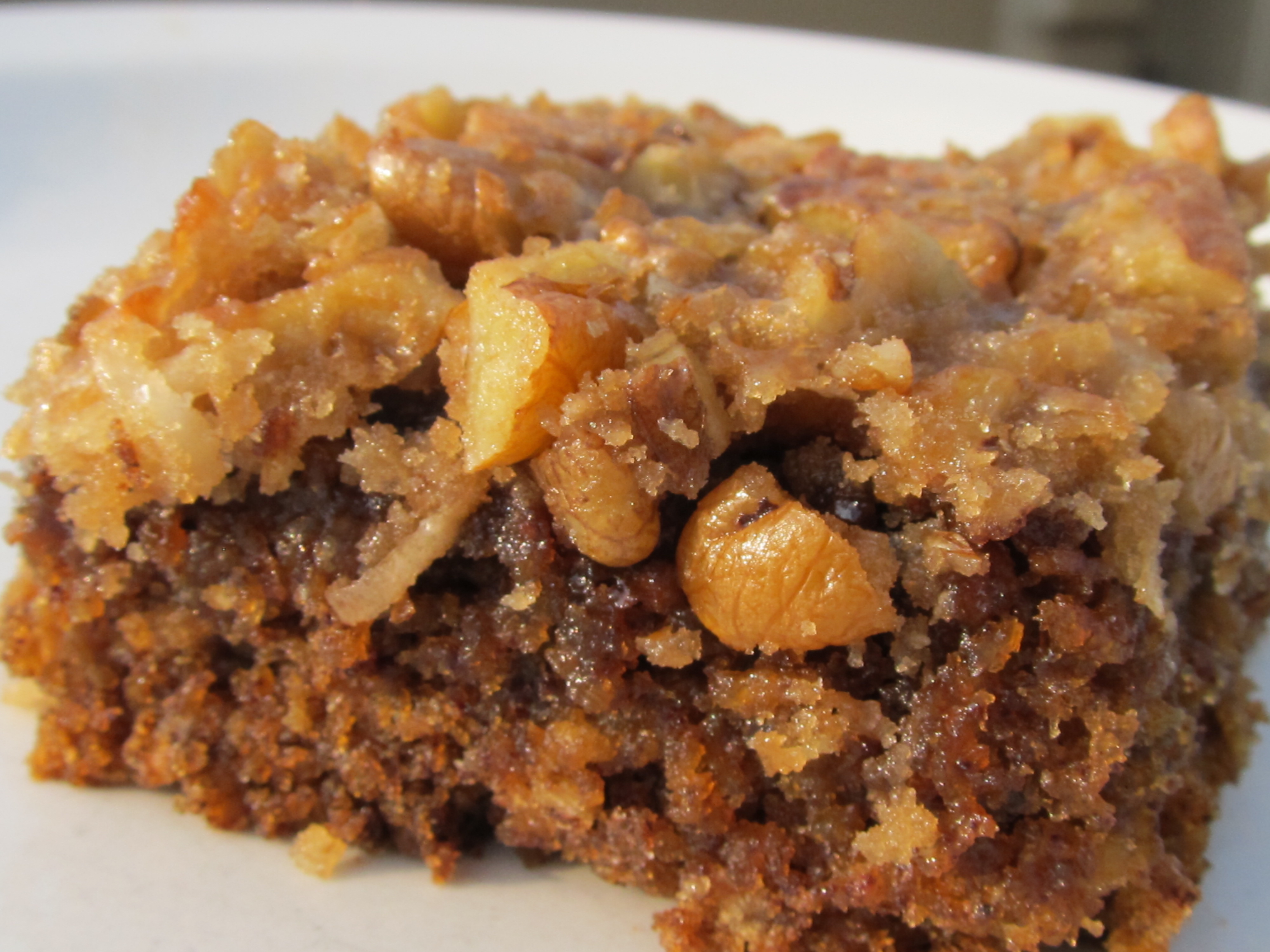 When you are ready to bake, pour a little more than half the cake batter into a greased and floured (with GF flour or additive free powdered sugar) 9×13 inch baking pan. Then gently spoon half of the filling mixture evenly over top of the batter. Do not try to spread, it will push down into the batter. The filling tends to sink any way, and you don’t want it on the bottom. Finish pouring the rest of the cake batter over the filling. Bake for 50 to 55 minutes, or until cake is set in the center. Remove cake from oven and raise the temperature of the oven to 375. Spoon the rest of the Filling/Topping evenly over the cake, and return to oven for 8 to 10 minutes or until topping is melted. Remove cake from oven and let cool completely before cutting. The filling will run if it is still warm. You might want to cut into smaller pieces, this is a very rich cake! Enjoy with your favorite cup of coffee!