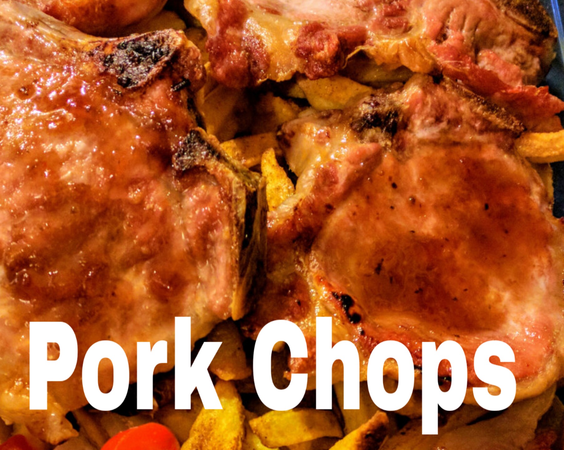 Fourth Meal: Pork Chops, Fried Sweet Potatoes and Baked Beans. Take out 4 of the Pork Chops you made previously, lay them out on a sheet pan and broil them to crisp and heated through, or put them in the air fryer or oven just until warm. Which ever way you like them. Open the can of Baked beans and heat until hot bubbling. We like Fried Sweet Potatoes with Pork Chops. The recipe link is below.