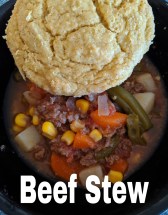 Be sure and bag up the corn muffins or corn dodgers that you had left from the onion rings, to have with the Beef Stew.