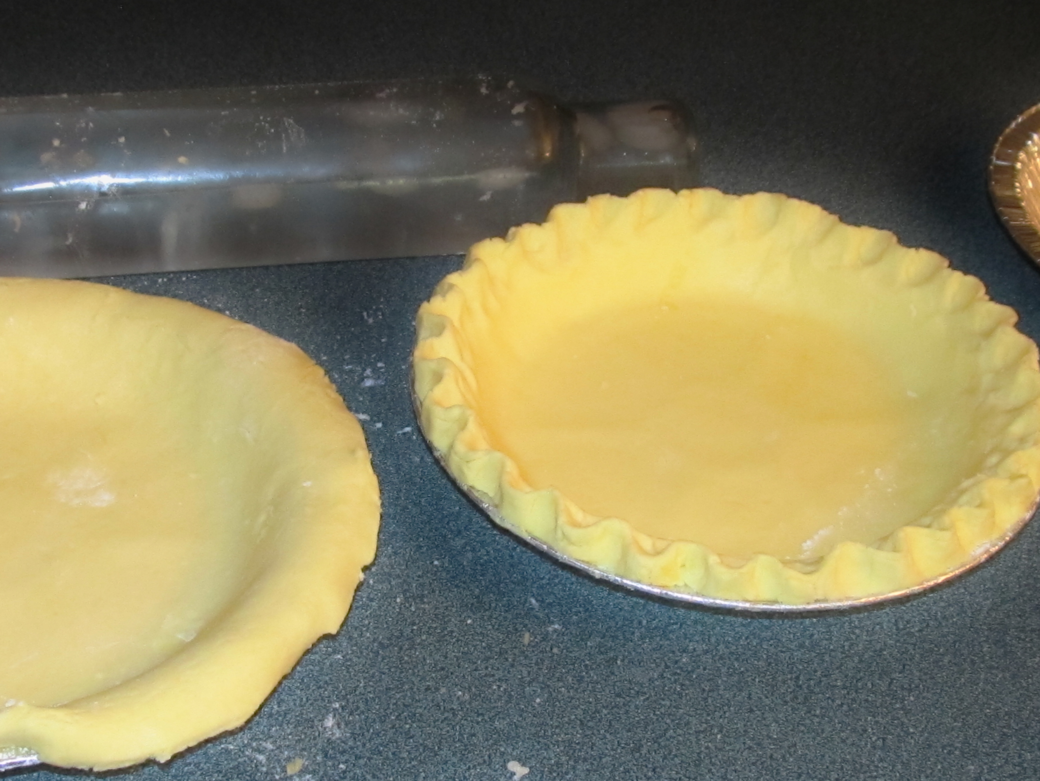 This will make 1 pie shell. To make pie with a top crust, you must double the recipe. When working with a top crust, after rolling it out on floured wax paper, it helps a lot to return it back to the fridge, or freezer until it is cold,(not frozen). The dough is so much easier to work with, if it is really cold.