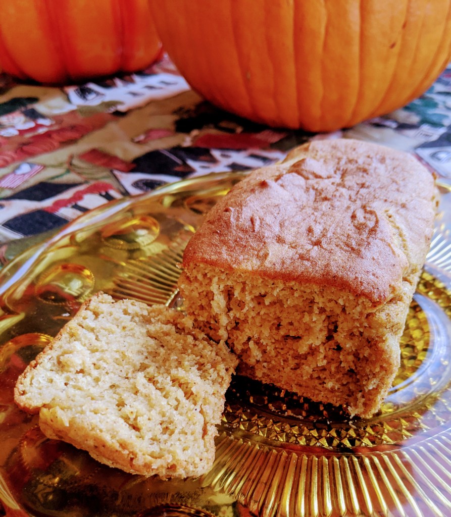 In large mixing bowl whisk together sugar, spices, baking powder, baking soda and GF flour, making sure there are no lumps. Fold in eggs, oil and pumpkin , then using electric mixer blend all ingredients together until it makes a smooth batter. Dividing batter evenly pour into greased loaf pans. ( I used 4 mini pans, 5 1/2in. x 3 in) Bake for 35- 40 minutes or until wooden toothpick inserted into center loaf comes back clean. Remove from oven and let cool. Enjoy!